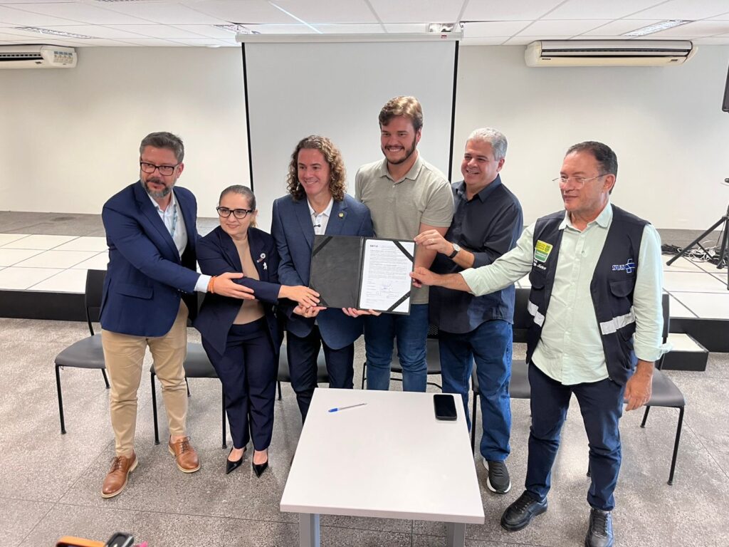 A Prefeitura de Campina Grande alcançou um marco importante nesta segunda-feira (13) com a assinatura do Termo de Compromisso para a implantação da Policlínica Regional na cidade. A cerimônia aconteceu na sede da Caixa Econômica Federal e contou com a presença do prefeito Bruno Cunha Lima, do vice-prefeito Alcidor Vilarim, do secretário municipal de Saúde, Carlos Dunga Júnior, do senador Veneziano Vital do Rêgo e da superintendente do Ministério da Saúde na Paraíba (SEMS/PB), Joelma Greicy Fernandes Lira.