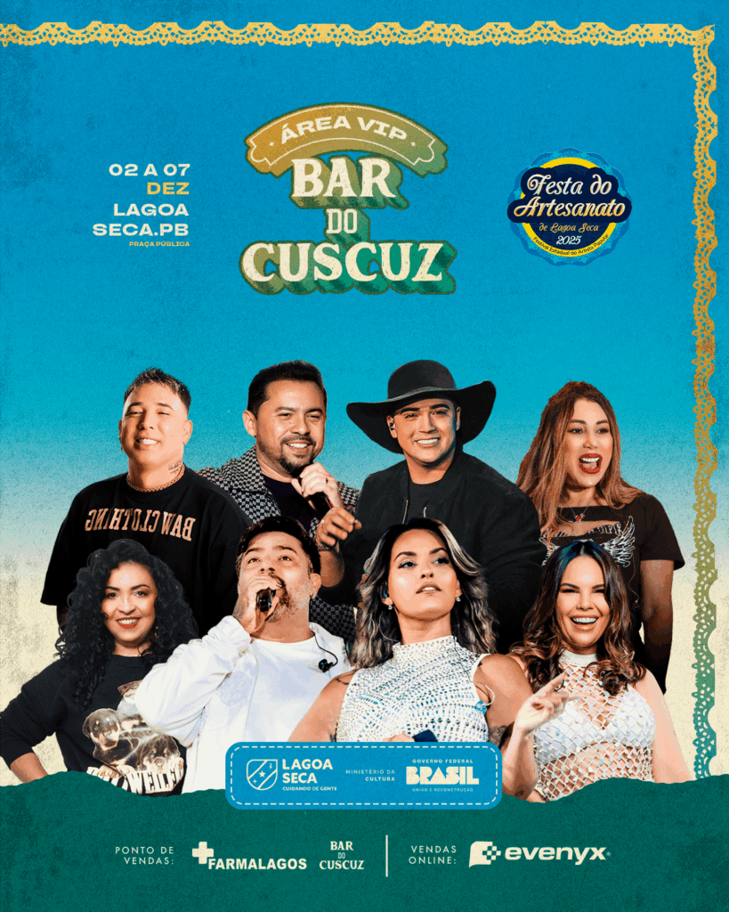 As vendas do lote promocional da Área VIP do Bar do Cuscuz para a Festa do Artesanato de Lagoa Seca já estão abertas. O evento será realizado entre os dias 2 e 7 de dezembro, prometendo uma programação intensa e shows que devem marcar mais uma edição da tradicional festa.