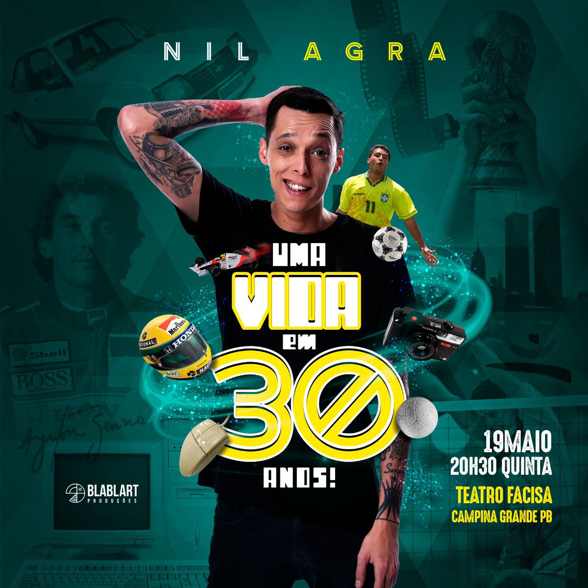 O humorista Nil Agra apresenta um show inédito nesta quinta-feira (19) em Campina Grande. Com o tema “uma vida em 30 anos”, o pernambucano promete levar com muita leveza e bom humor histórias que vão desde ídolos como Ayrton Senna até eventos históricos, a exemplo do atentado as torres gêmeas nos Estados Unidos em 11 de setembro de 2001.