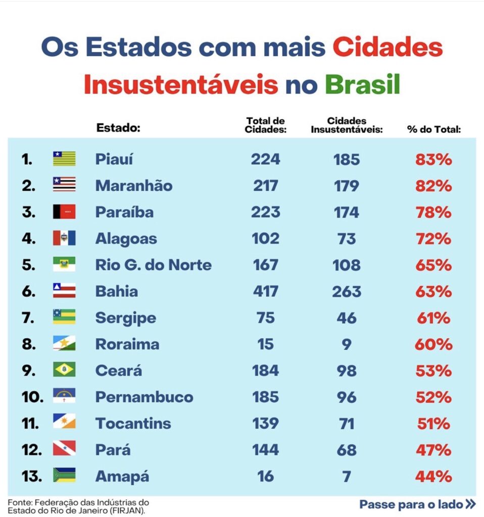 Um levantamento feito pela Firjan (Federação das Indústrias do Estado do Rio de Janeiro) mostra que 25% das cidades brasileiras não criam riqueza suficiente para custear a própria existência. Esses municípios dependem de repasses do FPM (Fundo de Participação dos Municípios), que é alimentado por recursos da União. Nesse levantamento, a Paraíba aparece ocupando a terceira colocação, tendo 174 dos 223 municípios considerados “insustentáveis” de acordo com o levantamento.