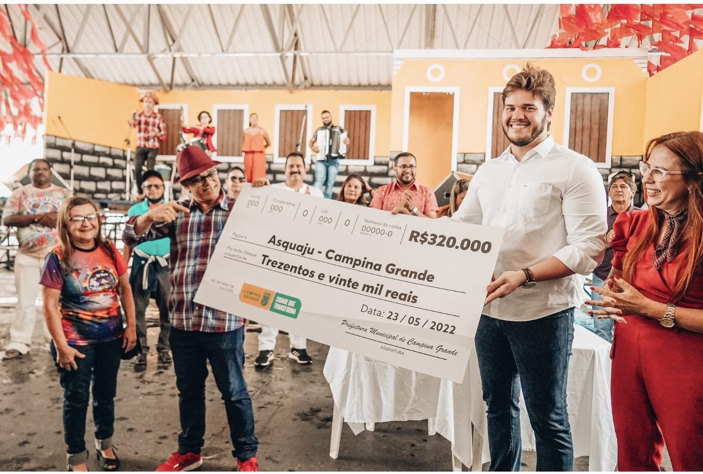 O prefeito Bruno Cunha Lima fez, na manhã desta segunda-feira, 23, na Pirâmide do Parque do Povo, a entrega simbólica do cheque cujo valor representa o maior apoio financeiro do Município às quadrilhas juninas de Campina Grande. As tradicionais quadrilhas campinenses – verdadeiros símbolos da cultura junina local – receberam um aporte financeiro de R$ 320 mil.
