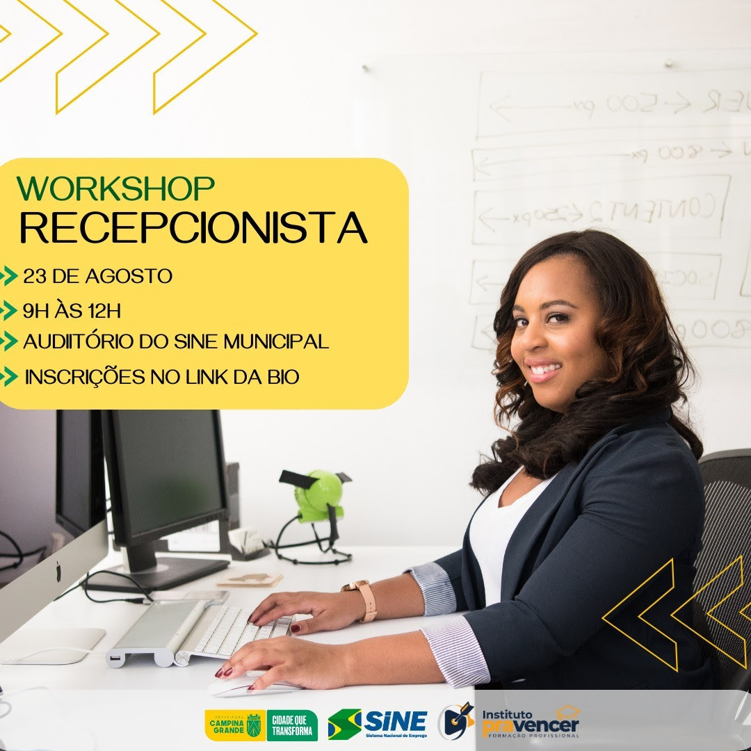 Se você sempre teve vontade de aprender técnicas para atuar em qualquer recepção, agora chegou a sua chance. Na próxima quarta-feira, dia 23 de agosto, a Prefeitura de Campina Grande, através do Sine Municipal, realizará de 9h às 12h um workshop gratuito para recepcionistas e\ou interessados em aprender sobre a função.