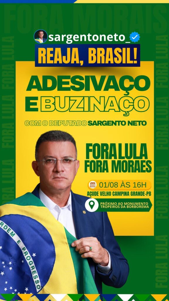 Uma mobilização de apoiadores do ex-presidente Jair Bolsonaro será realizada na tarde desta sexta-feira, 01/08, em Campina Grande, com protestos contra o governo Lula e o ministro Alexandre de Moraes, do Supremo Tribunal Federal (STF). Os atos estarão acontecendo em todo o país.
